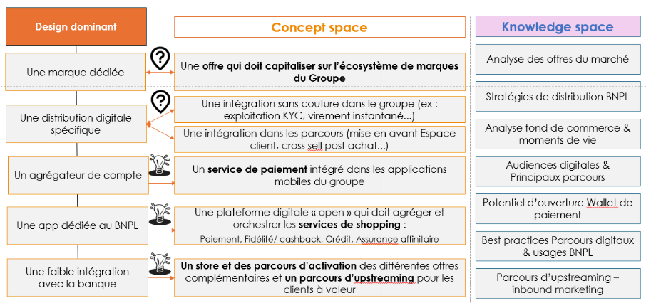 - Espace C (Concept) : les idées encore floues, qui élargissent le champ du possible